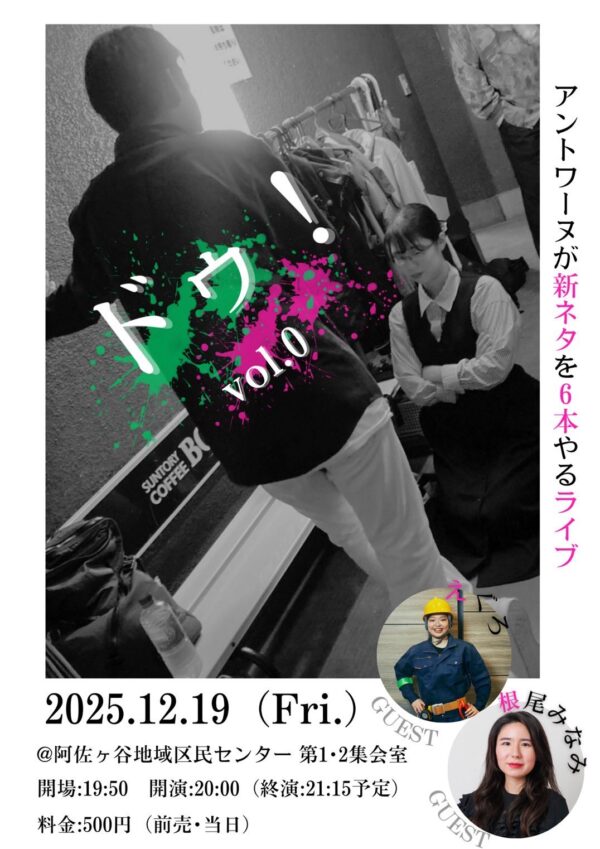 アントワーヌが新ネタを6本やるライブ。えぐろさんと一緒にゲストとして出演させていただきます。