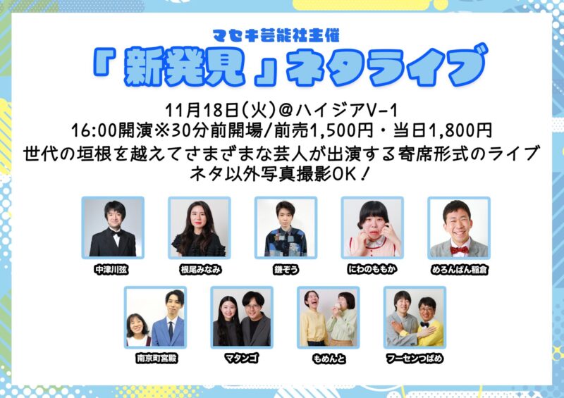 11/18(火)『新発見』ネタライブ 取り置き可能